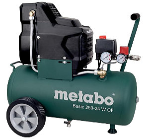 Wie der Einhell TE-AC 270/24/10 ist auch der Metabo Basic 250-24 W OF* mit etwa 24 kg ein Schwergewicht unter den Kompressoren. Auch hier erhöhen Räder und ein Haltegriff die Beweglichkeit des Geräts.